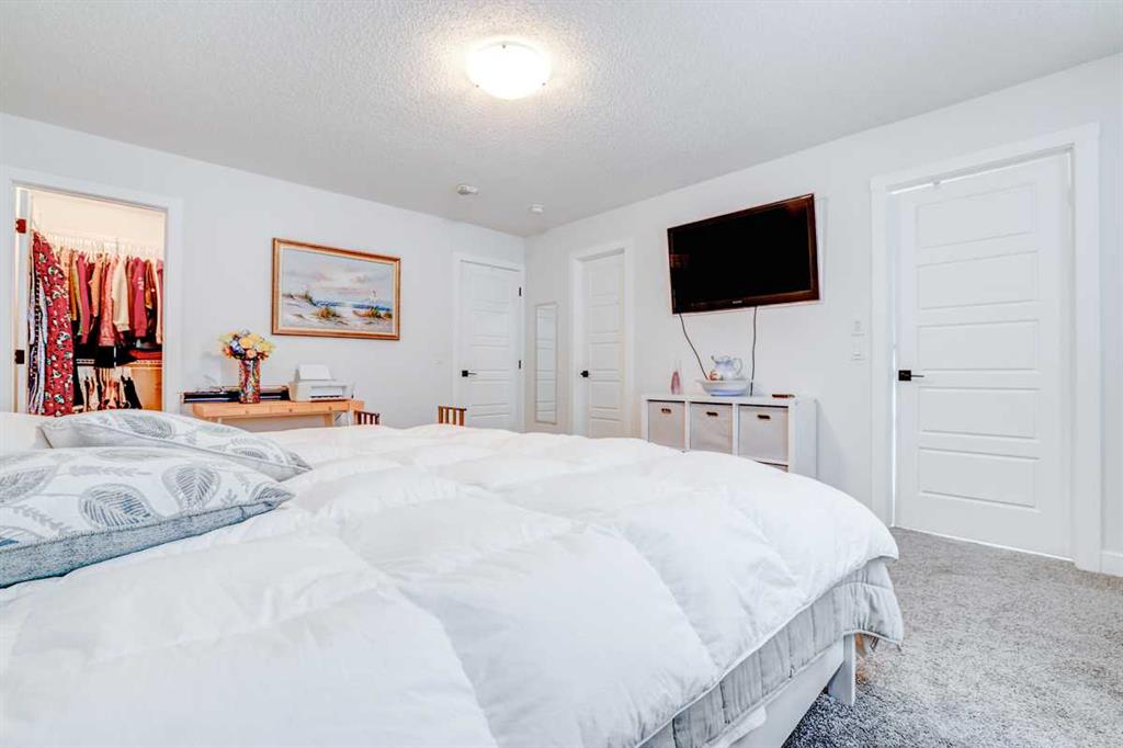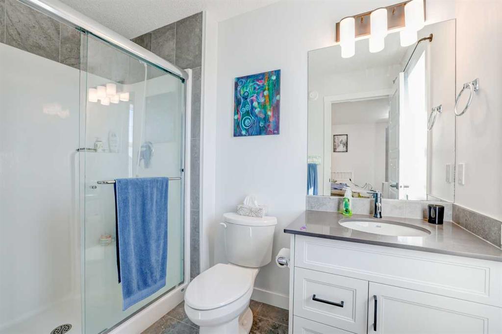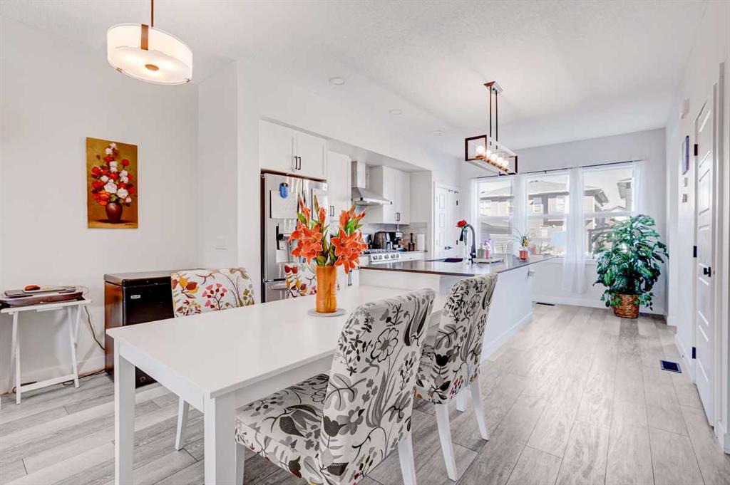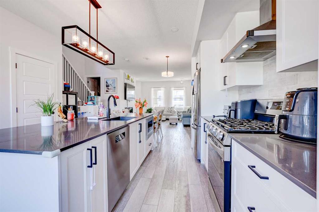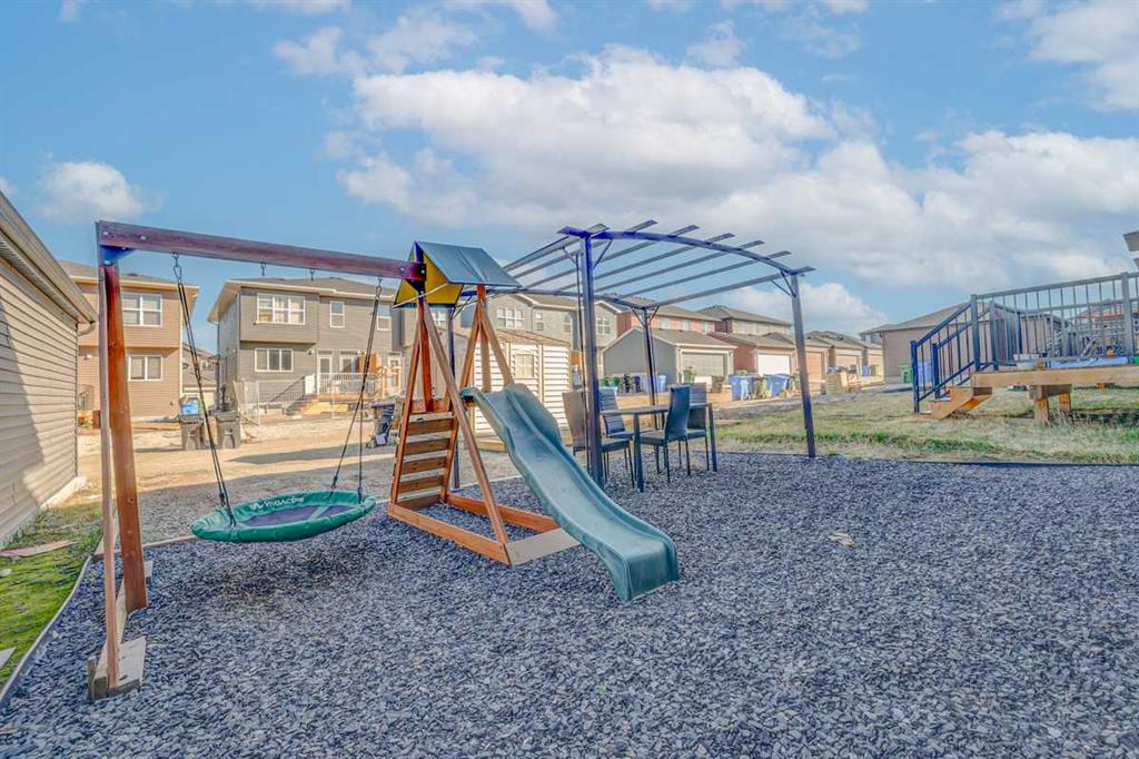 Welcome home to this beautifully designed semi detached home, complete with central air conditioning, in the sought after community of Legacy. The main floor open plan with its 9 ft ceilings & luxury vinyl plank flooring welcomes you to a spacious entry leading to the living room complete with a cozy fireplace , a dining area situated just off the kitchen with a huge centre island, stainless steel appliances with a gas stove and a pantry as well as a 2 piece bath. The upper floor consists of three bedrooms including a massive primary bedroom complete with a walk in closet and a 3 piece en suite, laundry room and a 4-piece bath. The completely developed basement with a separate entry from outside as well as from inside the home and has a large living area with a kitchenette, a bedroom area & 3 piece bath with a stacked washer/dryer. The front yard has a covered porch and is very low maintenance, and the back yard has a storage shed, gazebo & kids play area as well as a storage shed & a 2-car gravel-parking pad. This home offers easy access to walking trails, parks, schools, shopping and restaurants. Legacy is very family friendly and has many amenities to offer. Do not miss this incredible opportunity!