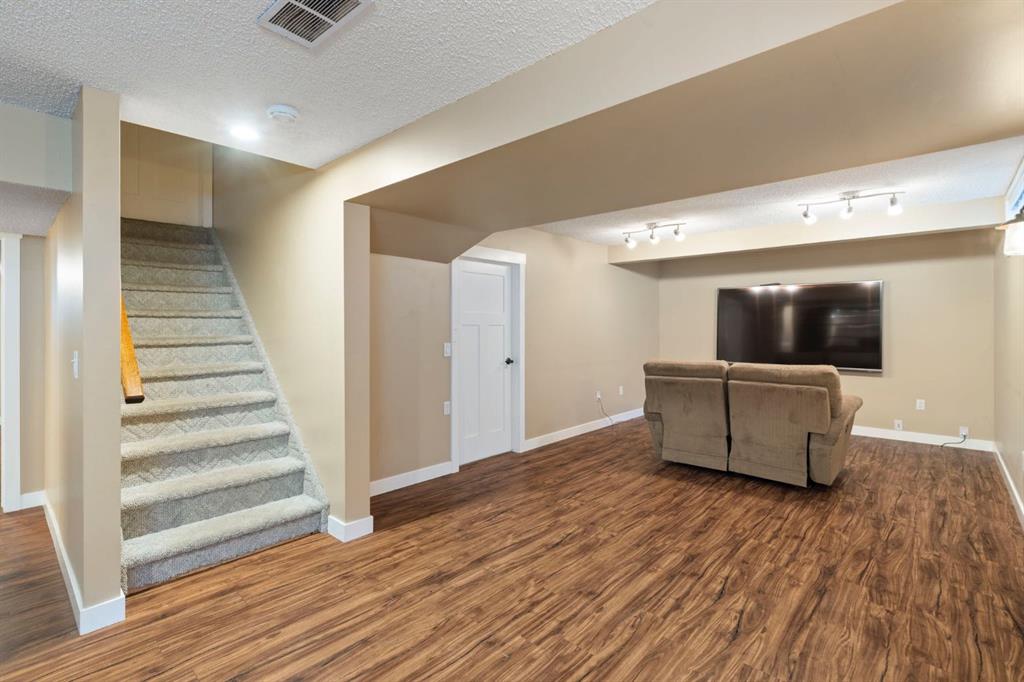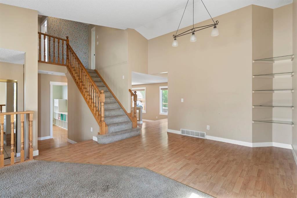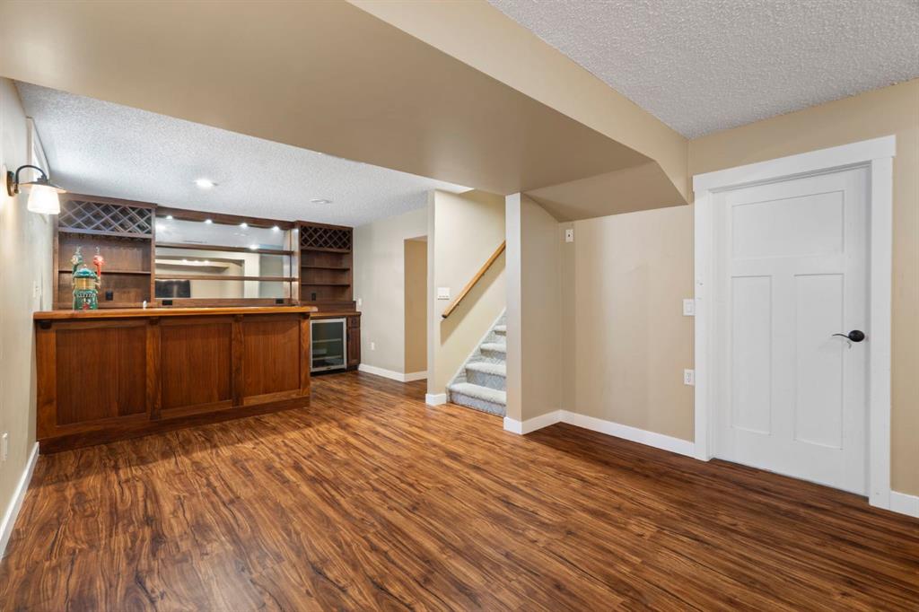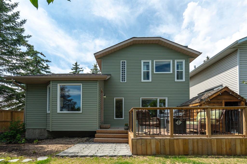 Welcome to this charming two-storey home located on a corner lot in the vibrant and highly sought-after community of Lake Sundance. Backing directly onto a large green space with a newly updated playground, this property offers the perfect blend of privacy, community, and family-friendly living. The main floor features two generous living areas, offering flexibility for everyday life, entertaining, or relaxing- complete with a cozy gas fireplace for added warmth and ambiance. A thoughtfully updated kitchen sits at the heart of the home, featuring updated appliances such as the gas stove, fridge, and dishwasher, all laid out in a functional design that flows easily into both living spaces. You'll also find a dedicated home office and a convenient half bath with laundry on the main level. Upstairs, a well-designed layout offers three bedrooms, including a spacious primary suite complete with a walk-in closet and private ensuite. The two additional bedrooms are ideal for kids, guests, or flex space and are supported by a full main bathroom. You’ll also appreciate the updated windows upstairs, enhancing both comfort and energy efficiency. The fully finished basement adds even more living space with a large bedroom, full bathroom, a generous recreation area, and a custom-built bar equipped with all the amenities- perfect for hosting or unwinding. Outside, enjoy the newly built front porch, expansive back deck, and fence (2022), surrounded by mature trees, garden space, and plenty of room to create your own outdoor retreat. This move-in ready home also features major updates including a new roof & new siding (2022), air conditioning, new furnace, new hot water tank, and the upgraded upstairs windows, offering peace of mind and long-term value. Located on a friendly street with wonderful neighbours and full access to the lake and community amenities, this is your opportunity to enjoy year-round living in one of Calgary’s most loved and established lake communities.