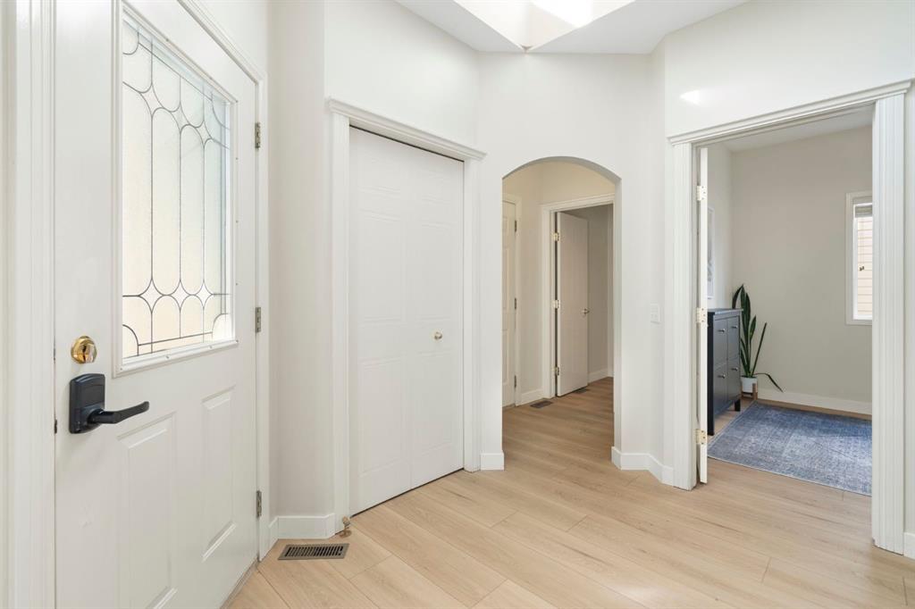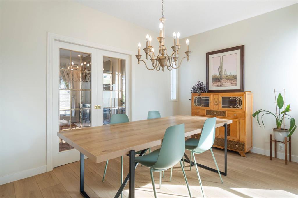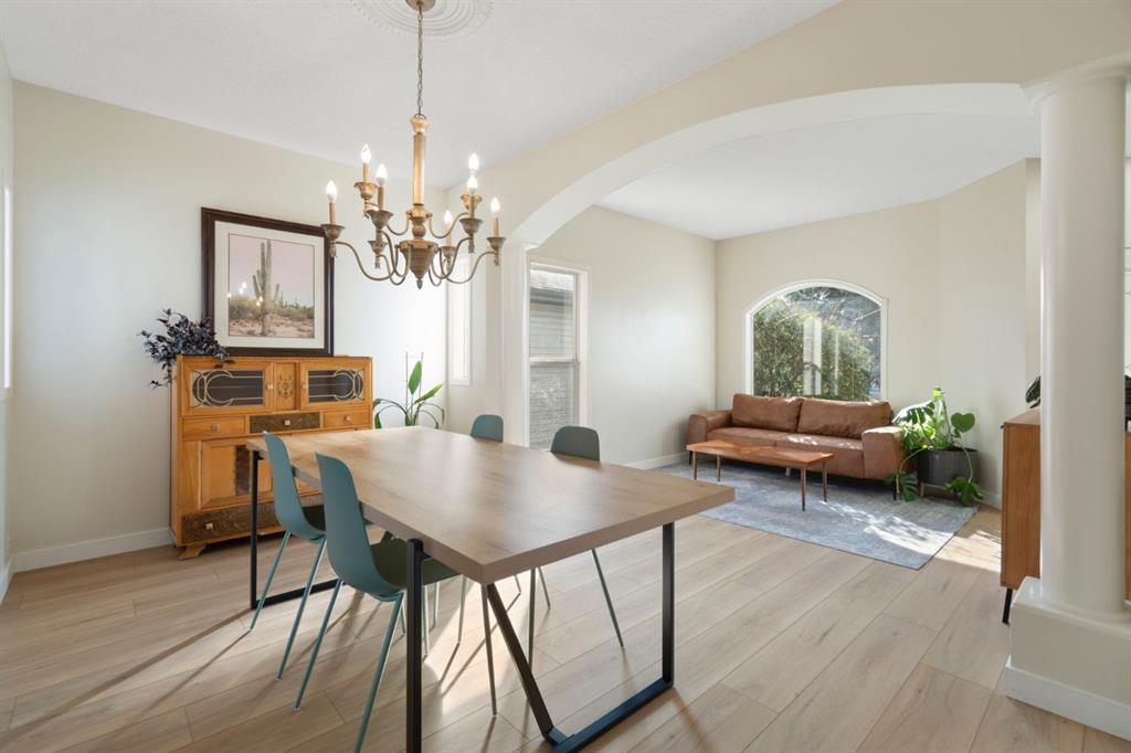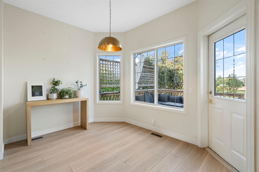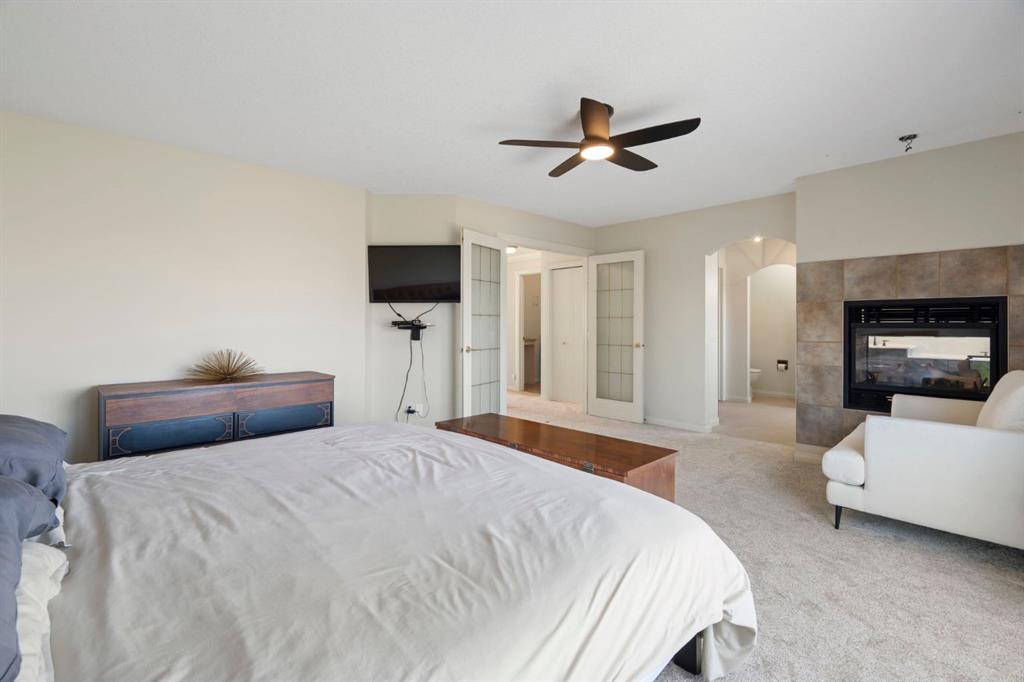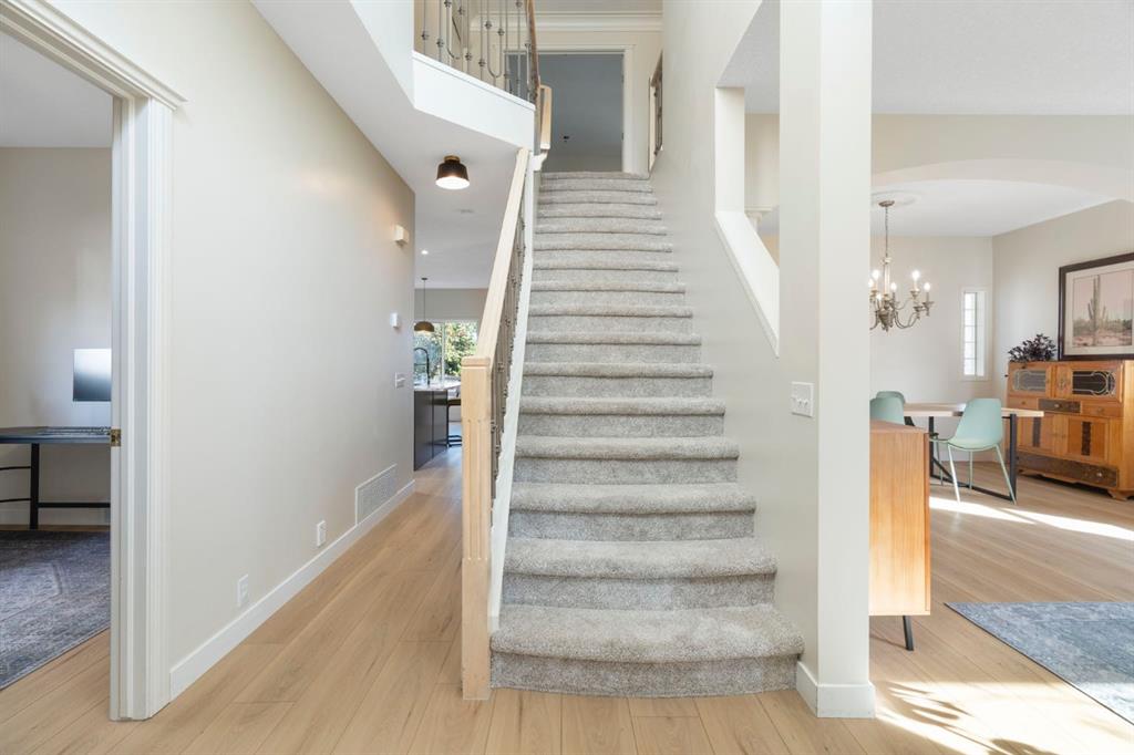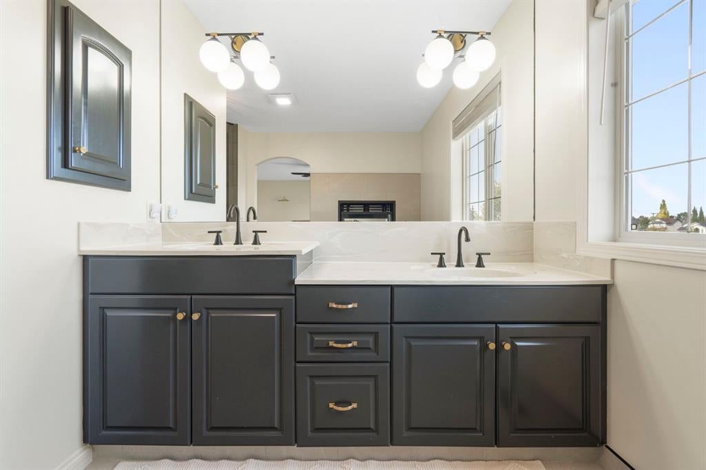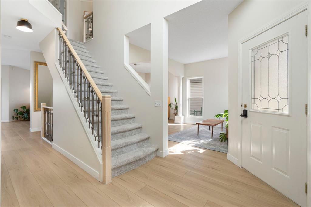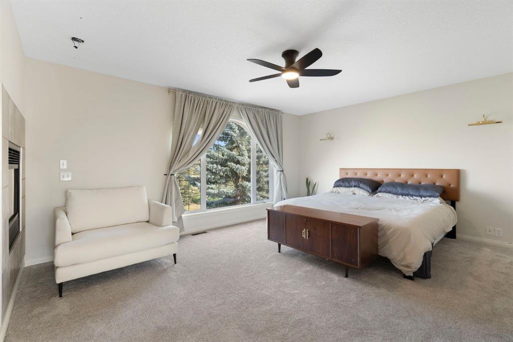 Welcome to this stunning 2,200+ sq. ft. home where timeless character meets modern updates. Elegant crown moldings, graceful archways, and custom built-ins add unique charm, while thoughtful renovations bring a fresh, contemporary feel. The heart of the home features custom quartz countertops, fresh paint, custom painted cabinetry, and brand-new lighting throughout. On the main level, new vinyl plank flooring adds style and durability, while the upper level is finished with plush, upscale carpeting for comfort. The primary suite showcases a brand new spa-inspired ensuite transformation, designed for luxury and relaxation. Multiple gas fireplaces enhance the warmth and ambiance, creating a welcoming atmosphere year-round. The spacious layout includes grand front living and dining rooms, a dedicated office, and oversized bedrooms perfect for families. Step outside to your tiered deck with a gazebo and hot tub, an ideal space for entertaining or relaxing. The backyard backs directly onto a park- no neighbours behind- while the front offers sweeping mountain views. Just one block from the Bow Valley ridge trails leading into Fish Creek Park and steps from a nearby playground, this home offers the perfect balance of nature and convenience. Nestled in a quiet cul-de-sac with welcoming neighbours, the location is truly ideal. You’ll also enjoy the convenience of 130th Avenue’s shopping, dining, and amenities just minutes away. This home is the perfect blend of modern upgrades, classic charm, and an unbeatable location!