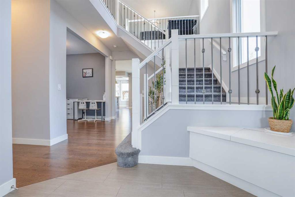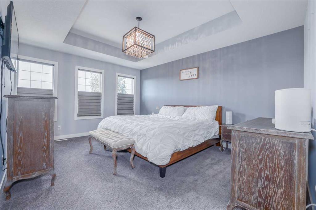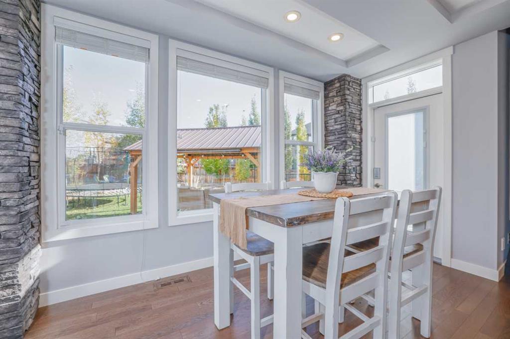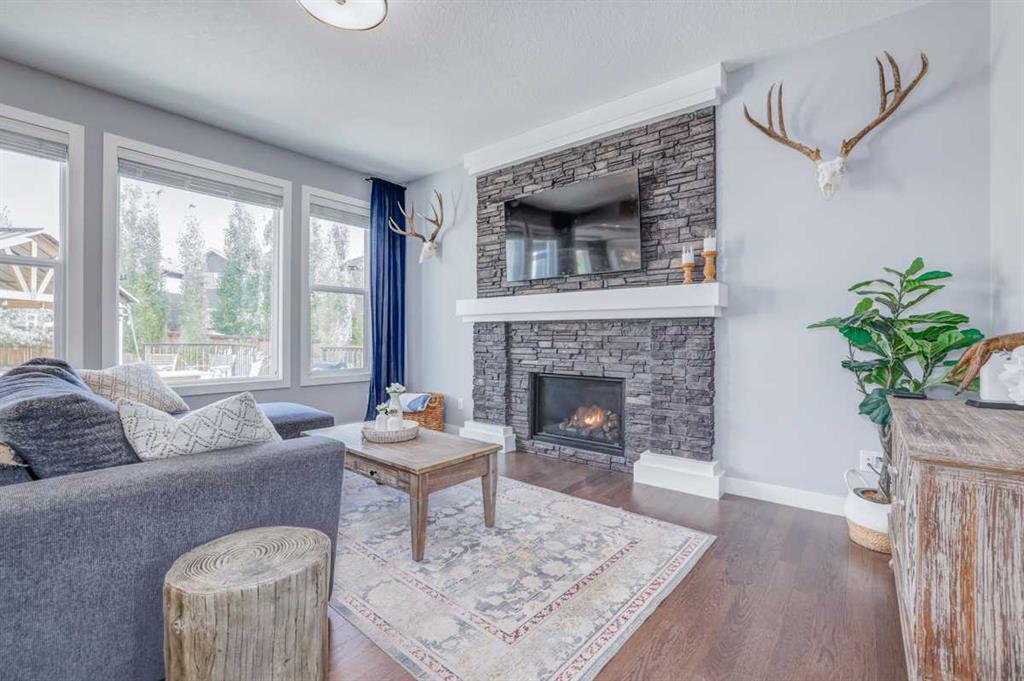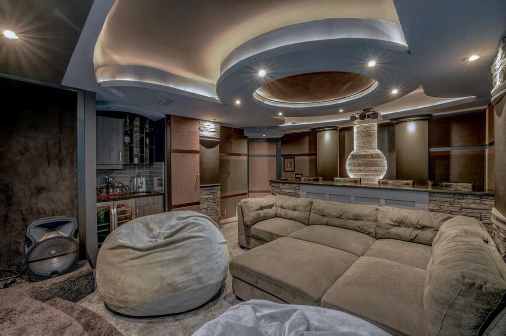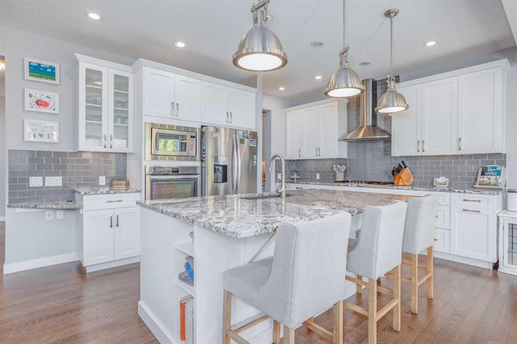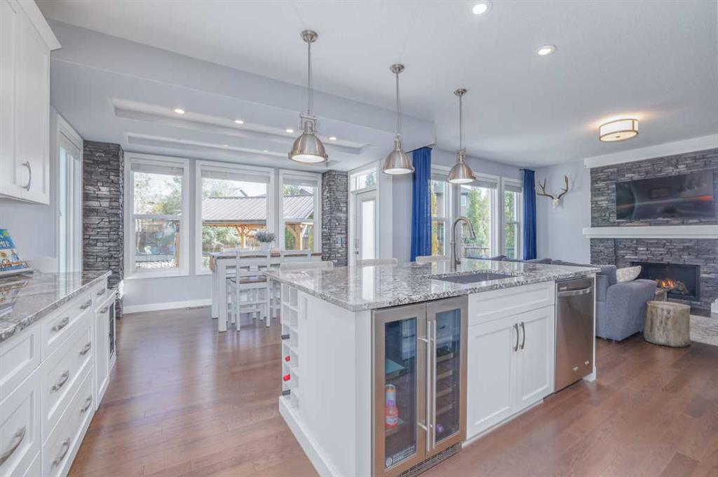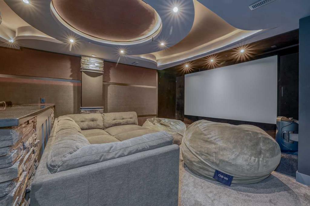 A BEAUTIFUL & ELEGANT, fully developed 2-storey home in the heart of Mountainview, with over 3500sq.ft of developed LIVING SPACE, extensive CUSTOM MILLWORK, IN HOME THEATER, 3 spacious bedrooms + MASTER SUITE, HOME GYM, STUNNINGLY landscaped treed backyard & DOUBLE ATTACHED GARAGE, this home shows its pride of ownership!With detailed stonework, oversized windows, custom lighting and top of the line finishings, this home is all class!! A warm & inviting front foyer welcomes you into the open concept main floor with a spacious living room, centered around a stunning floor to ceiling stone surround gas fireplace with custom millwork and large windows allowing for natural light to brighten the space. The living room nicely opens to the gourmet kitchen, which has been designed extensively & upgraded with stone countertops, custom cabinets, large island, decorative lighting & a walk-through butler’s pantry with ample cabinetry & counter space. Quality S/S appliances include gas countertop stove, hood fan, built-in wall oven and microwave, French door fridge/freezer, built-in dishwasher and separate built-in beverage fridge. Just off the kitchen, the dining room offers 4 large windows, beautiful custom ceiling detail with inset lighting & beautiful views into the backyard features including a large composite deck area perfectly combining outdoor/indoor living space and great for hosting family & friends. The main floor of this home is finished with beautiful hardwood, high ceilings and also offers a nicely tucked away den/office area, modern 2pc main bathroom, large mudroom with built-in bench, closets and hangers, connecting to the double attached garage. The upper level features a large bonus room area, one wing of the upper level is the master retreat, designed with custom ceiling and feature lighting, a dual spacious walk-in closet, and the stunning master 5pc-ensuite offering decorative tile, dual vanity with undermount sinks, soaker tub, full height glass & decorative tile shower with rain showerhead & built-in bench/ shelves and tucked away private water closet. Nicely rounding off the upper level you will find large 2 bedrooms, both with good-sized closets, a shared main 4pc bathroom with private tub/shower combo, 2 sets of vanities - each with their own sinks & cabinets, and a separate laundry room with tiled floors, sink, ample counter and cabinetry space, and built-in racks for storing linens. The basement of this home is TRULY EXCEPTIONAL and features a luxurious custom home theater + wet bar + wine fridge, home gym equipped with sport flooring, a great-sized 4th bedroom & shared 4pc bathroom with tub/shower combo! All this in a quiet cul-de-sac and on an amazing oversized pie lot that is fenced & beautifully landscaped backyard w/ huge composite back deck & gazebo. This home is located just steps away from various parks, amenities, grocery centers and schools. A RARE FIND in an even better location that needs to been seen to be appreciated!