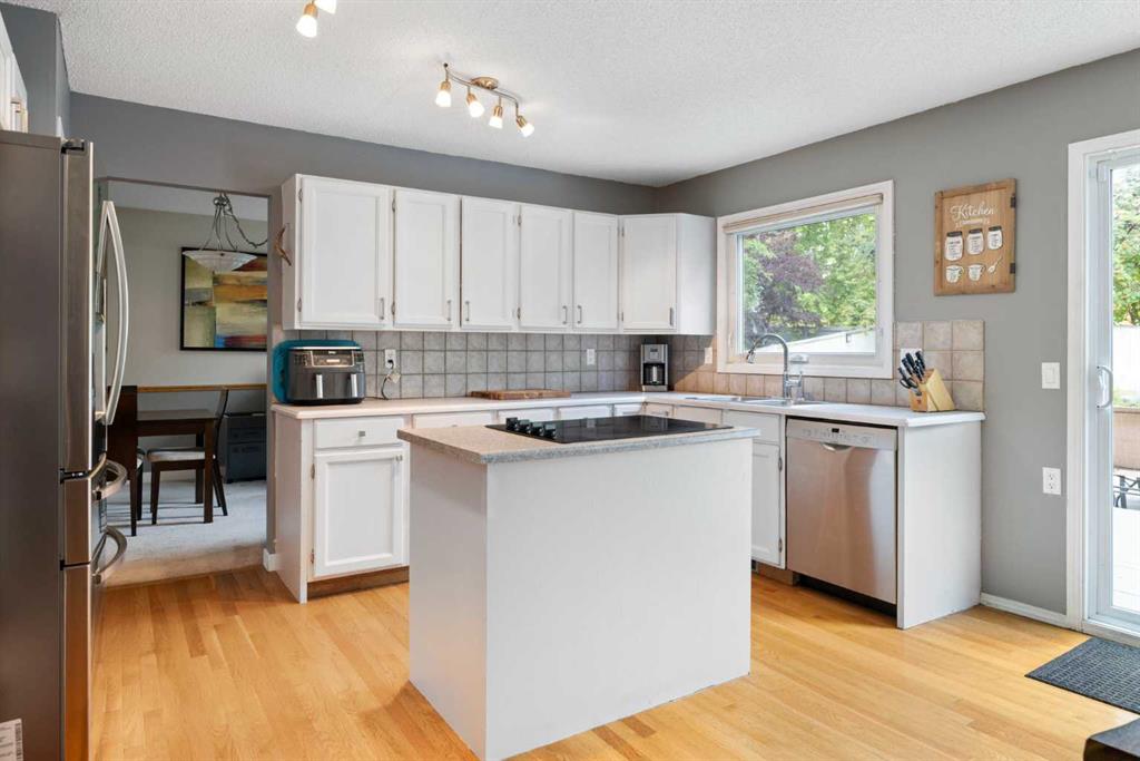 This stunning custom-built home in the highly sought-after community of Woodbine offers the perfect mix of elegance, comfort, and convenience. With soaring vaulted ceilings, an open-concept floor plan, and beautiful hardwood & ceramic tile flooring, this home is built to impress. The main floor is designed for living and entertaining with a spacious living room & dining room, a bright kitchen with island & breakfast bar, cozy family room with a gas fireplace, and a sunny breakfast nook with patio doors leading to your oversized deck. You’ll also love the convenience of a main floor laundry and a stylish half bath. Upstairs, a charming loft welcomes you to the bedroom level, where you’ll find three spacious bedrooms including a luxurious primary retreat complete with a walk-in closet, jetted tub, separate shower, and dual sinks. The fully finished lower level offers even more living space with a rec room & second fireplace, a 4th bedroom, and a smart walk-up entry to the garage—perfect for families or guests. Outside, enjoy your oversized lot with private deck and take advantage of being just steps from Fish Creek Park’s walking & biking trails, plus quick access to shopping and Costco!... Also a roof that only a year old!