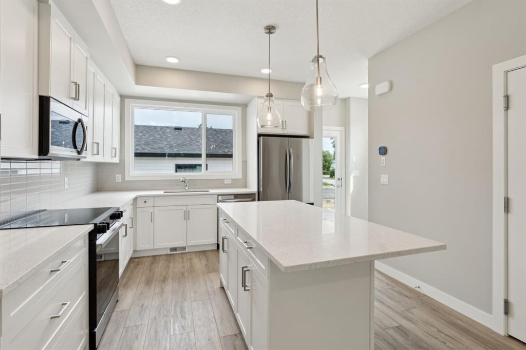 Modern Duplex with secondary LEGAL SUITE | Move-In Ready | Prime South Calgary Location. This new beautifully crafted paired home offers contemporary style, income potential, and tasteful upgrades throughout. Located in one of South Calgary’s most desirable neighbourhoods of Acadia, this home is perfect for first time home buyer, investors, multigenerational families, or homeowners looking to offset their mortgage with rental income. From the moment you arrive you will appreciate the attention to detail. The main residence of this MIDTOWN 2 model is 1634 SqFt |3 Bed | 2.5 Bath and features 9-foot ceilings, light neutral finishes, large windows and an open-concept layout that flows seamlessly from the living room to the central kitchen. The chef-inspired kitchen boasts quartz countertops, stainless steel appliances including a built-in microwave, and a large island—ideal for entertaining or everyday meals. Upstairs, the primary bedroom offers a walk-in closet and a private 4-piece ensuite, while two additional bedrooms, a full bathroom, and upper-level laundry (with washer and dryer. complete the upper floor. The secondary LEGAL SUITE is 647 SqFt and has a private side entrance with a concrete walkway, making it ideal for tenants or extended family. It features high ceilings, large windows, spacious kitchen and eating area, in-suite laundry, and its own cozy living space—bright, functional, and designed for comfort. Enjoy Calgary’s summers with a private, fenced yard featuring a spacious patio perfect for enjoying a morning coffee, entertaining with friends and family or just a place to relax .Designed to be low maintenance and turnkey. A detached double-car garage completes the package, offering convenience and additional storage. Don’t miss your chance to own a home that’s as practical as it is beautiful—with income potential, modern finishes, and move-in ready condition, this property truly has it all. This complex is home to only 19 units (with NO HOA OR CONDO FEES) is surrounded by green space, parks & playgrounds. Walking distance to schools, shopping and transportation this location is hard to beat. Call to book your private tour or come and visit us during our Showhome hours.