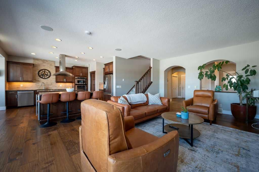 .Welcome to elevated family living in beautiful Chaparral Valley, Enjoy your morning coffee with the morning sunshine and stunning views of Blue Devil Golf Course, Valley and surrounding nature. This 4-bedroom, 3.5-bath home was designed for both luxury and everyday family life. The open-concept main floor features a custom chef’s kitchen with double islands, granite countertops, upgraded stainless steel appliances, and a built-in oven, convection microwave and beverage fridge — perfect for entertaining or busy mornings with the kids. The spacious dining area and cozy family room with fireplace create a warm, inviting atmosphere. Upstairs offers two generous kids’ bedrooms, a large laundry room with cabinetry, and a true primary retreat complete with a flex area, spa-inspired ensuite with soaker tub and steam shower, and a walk-in closet. The fully finished walkout basement adds even more living space with an additional bedroom, bright rec room with fireplace, flex space for a gym, and rough-ins for a future kitchen or bar. Enjoy your oversized deck with breathtaking morning sun, underground sprinklers, and a triple tandem garage with exceptional storage or perfect for developing the next hockey superstar. With recent exterior upgrades (new shingles & front stone work in 2022) and endless updates throughout, this is the perfect place to plant roots and call home.